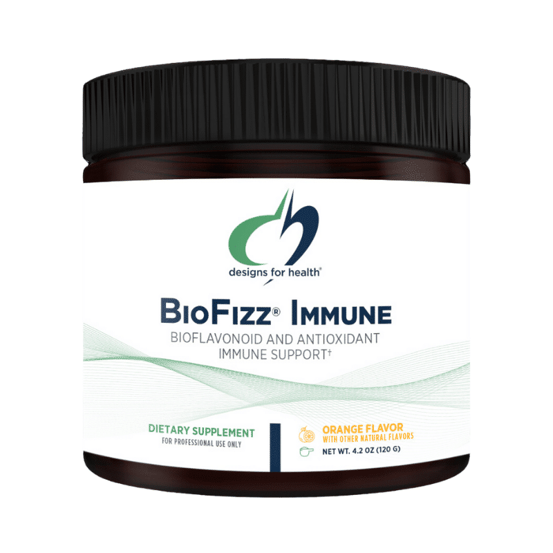 BioFizz® Immune by Designs for Health is a convenient, orange-flavored effervescent powder formulated to support immune health. It combines essential nutrients such as vitamins C, D, and E, zinc, and flavonoid-rich plant compounds like quercetin and resveratrol. These ingredients work synergistically to strengthen the body’s response to immune challenges and promote a healthy inflammatory response. Sweetened with monk fruit extract, BioFizz® Immune contains zero sugar, making it suitable for individuals mindful of blood sugar levels.