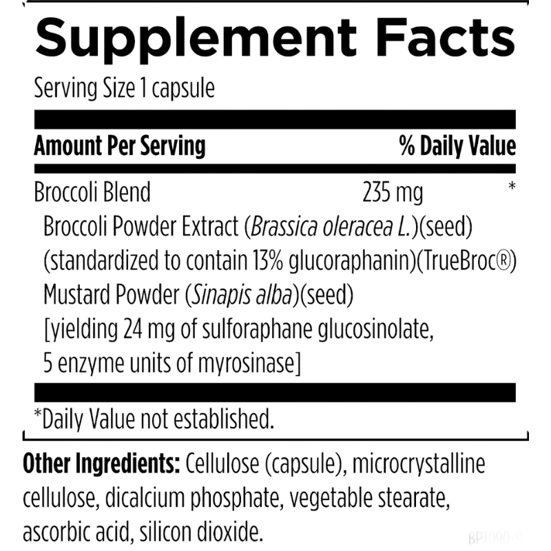Take one capsule per day, or as directed by your healthcare practitioner. For optimal absorption, it can be taken with a meal. BroccoProtect™ is available in 60 and 90 capsule offerings.