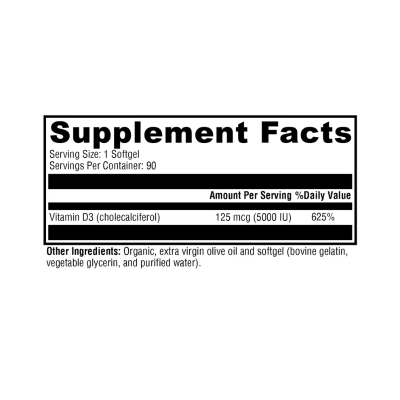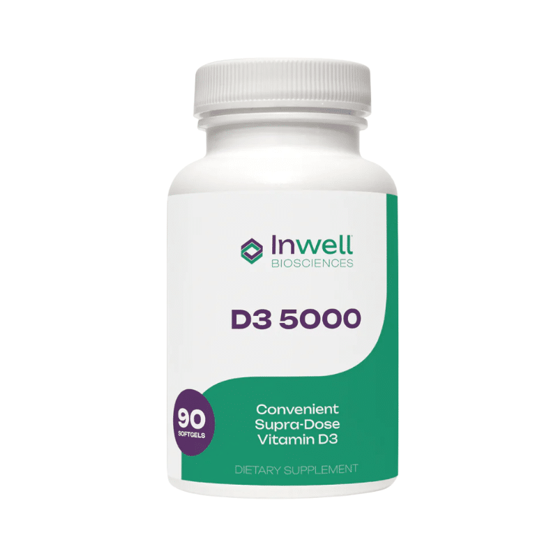D3 5000 Softgels (90 ct) by Inwell: Experience the benefits of vitamin D with Inwell’s D3 5000 Softgels. Each softgel delivers a potent dose of 5000 IU, supporting bone health, immune function, and overall wellness. With 90 easy-to-swallow softgels per bottle, maintaining optimal vitamin D levels has never been more convenient. Perfect for those seeking a high-strength supplement to enhance their daily health regimen.