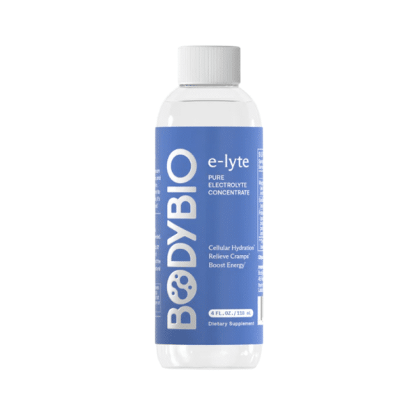 E-Lyte Liquid by BodyBio is a balanced electrolyte concentrate that supports optimal hydration, muscle function, and energy levels.