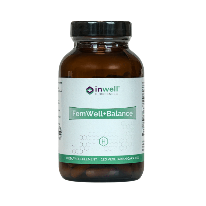 FemWell + Balance Softgels by Inwell. FemWell is designed to support women’s health with a blend of essential nutrients and herbal extracts. This formula aims to promote hormonal balance, enhance energy levels, and support overall well-being while offering a comprehensive blend of omega-3 fatty acids and essential vitamins to support heart health, cognitive function, and joint flexibility. Ideal for daily wellness and vitality.