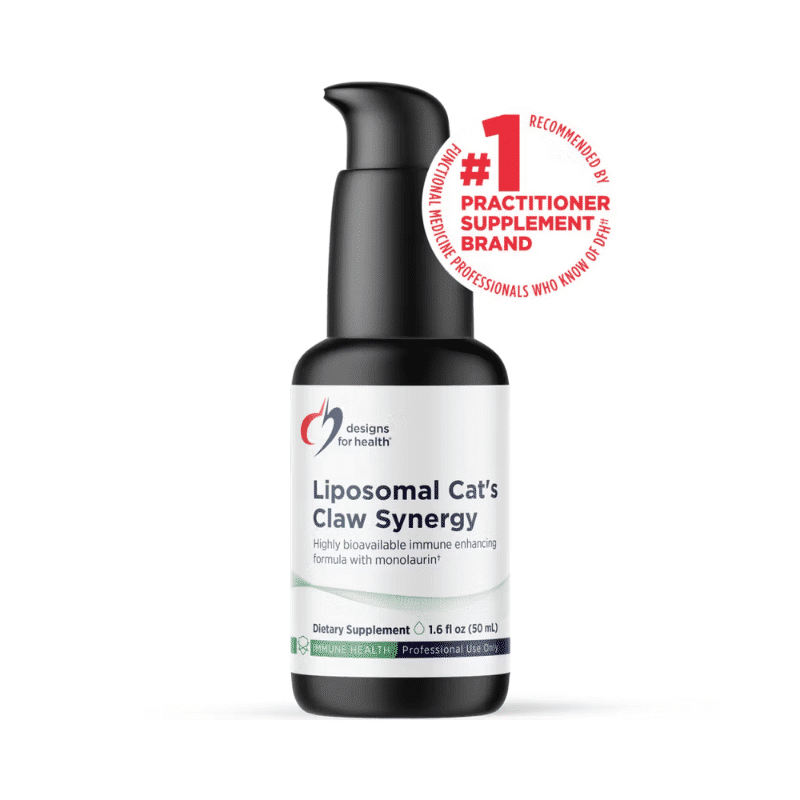 Liposomal Cat’s Claw Synergy by Designs for Health supports immune health and a balanced inflammatory response with cat’s claw, monolaurin, vitamin D, and lemon balm in a highly absorbable liposomal form.