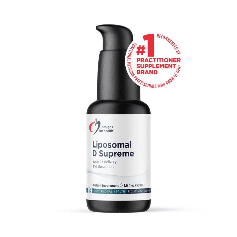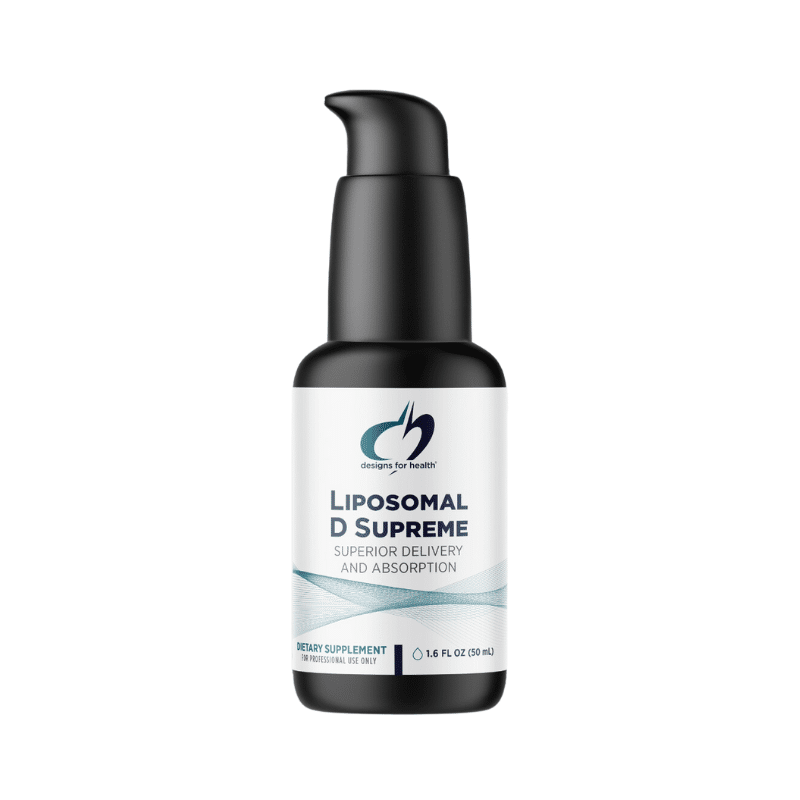 Liposomal D Supreme by Designs for Health delivers vitamins D and K in a highly absorbable liposomal form to support immune function, bone health, and calcium metabolism.
