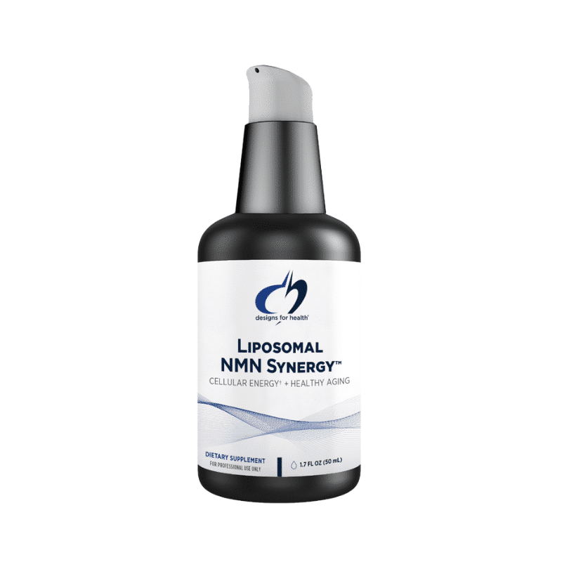 Liposomal NMN Synergy™ by Designs for Health combines nicotinamide mononucleotide (NMN) and trimethylglycine to support energy production, DNA repair, and healthy aging. NMN serves as a precursor to nicotinamide adenine dinucleotide (NAD+), a coenzyme essential for over 500 reactions in the body, including energy production, metabolism, and DNA repair. Trimethylglycine supports NMN’s action, promoting healthy aging in cells and tissues. Utilizing advanced liposomal technology, this formula ensures enhanced absorption and bioavailability, delivering nutrients directly to cells. Liposomal NMN Synergy™ is gluten-free, dairy-free, soy-free, and non-GMO.