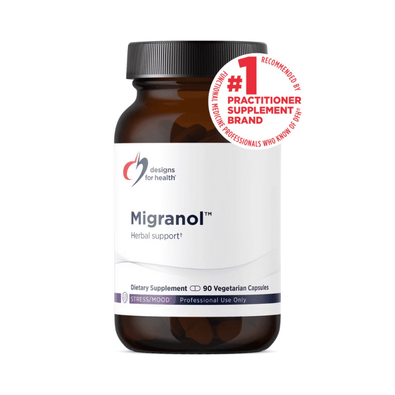 Migranol™ by Designs for Health is a synergistic blend of botanical extracts, magnesium, and riboflavin (vitamin B2) designed to support brain health and promote a healthy response to stress.