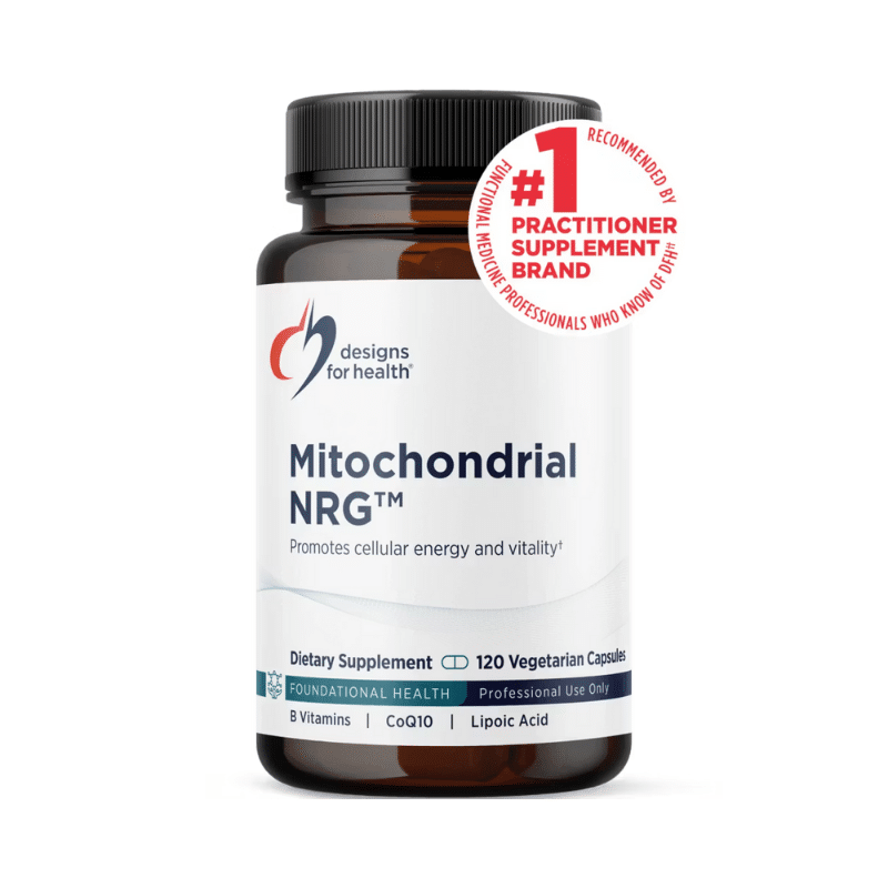 Mitochondrial NRG™ by Designs for Health is a synergistic blend of nutrients and botanicals designed to support mitochondrial function, enhance energy production, and promote overall vitality.