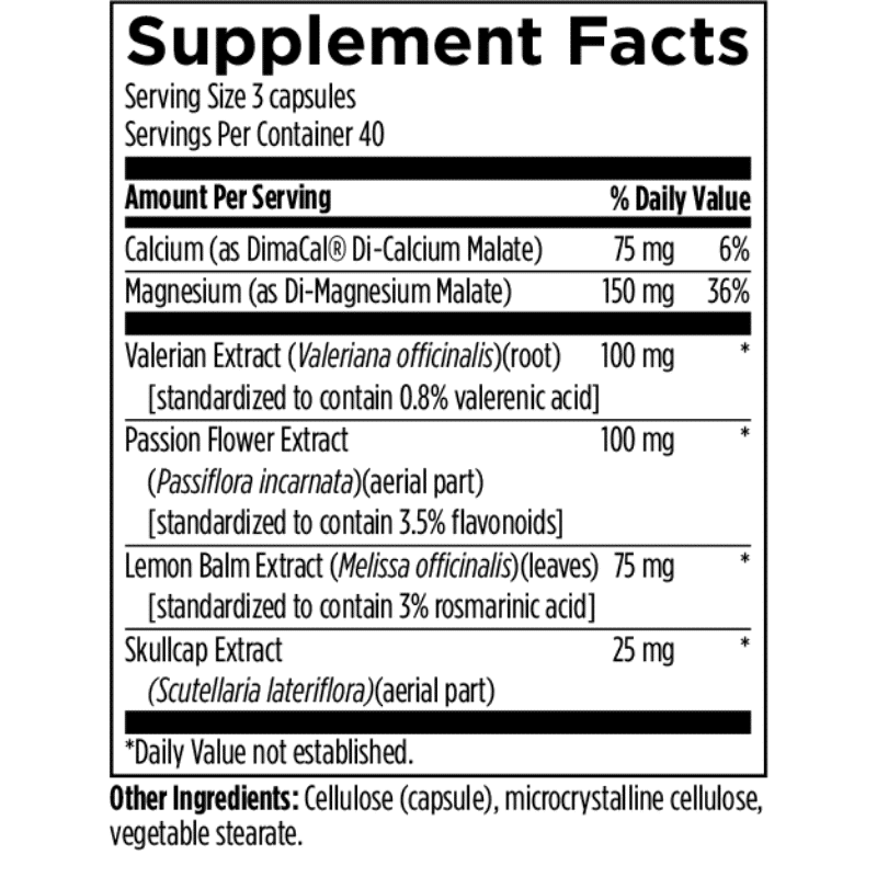MyoSedate™ by Designs for Health combines valerian root, passionflower, skullcap, calcium, and magnesium to support healthy muscle relaxation and promote restful sleep without causing drowsiness. Valerian root and passionflower are known for their calming properties, while skullcap may enhance mood without reducing energy or cognitive function. Calcium and magnesium play essential roles in muscle contraction and relaxation, further supporting muscle health. This formulation is gluten-free, dairy-free, soy-free, and non-GMO.