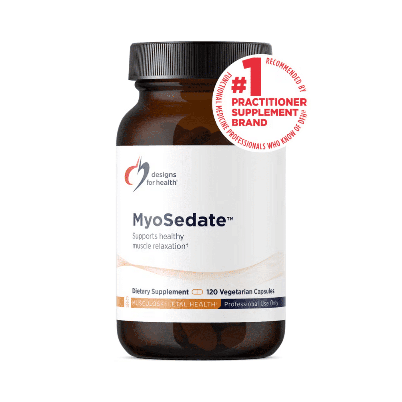 MyoSedate™ by Designs for Health is a blend of calming herbs and minerals designed to support healthy muscle relaxation, promote restful sleep, and alleviate occasional stress.