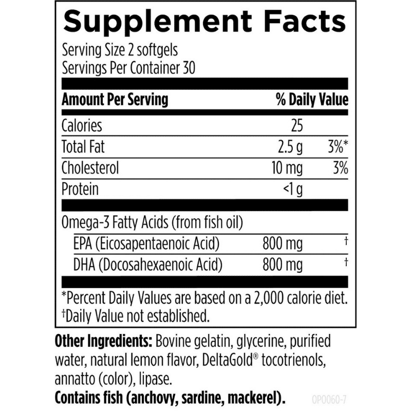 Bovine gelatin, glycerine, purified water, natural lemon flavor, DeltaGold® tocotrienols, annatto (color), lipase.