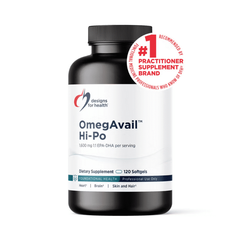 OmegAvail™ Hi-Po by Designs for Health is a high-potency omega-3 supplement that supports cardiovascular health, cognitive function, and overall well-being.