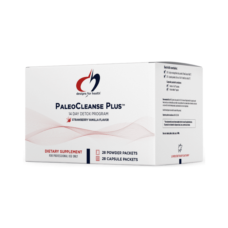 PaleoCleanse Plus™ Detox Program by Designs for Health is a comprehensive 14-day nutrition plan designed to support effective detoxification, featuring HydroBEEF™ bone broth protein and targeted nutrients.
