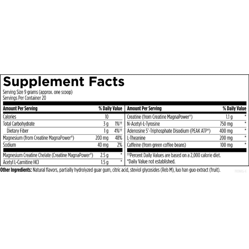 Serving Size: 9 grams (approx. one scoop) Servings Per Container: 20 Amount Per Serving ††Percent Daily Values are based on a 2,000 calorie diet. * Daily Value not established. Natural flavors, partially hydrolyzed guar gum, citric acid, steviol glycosides (Reb M), luo han guo extract (fruit).Supplement Facts