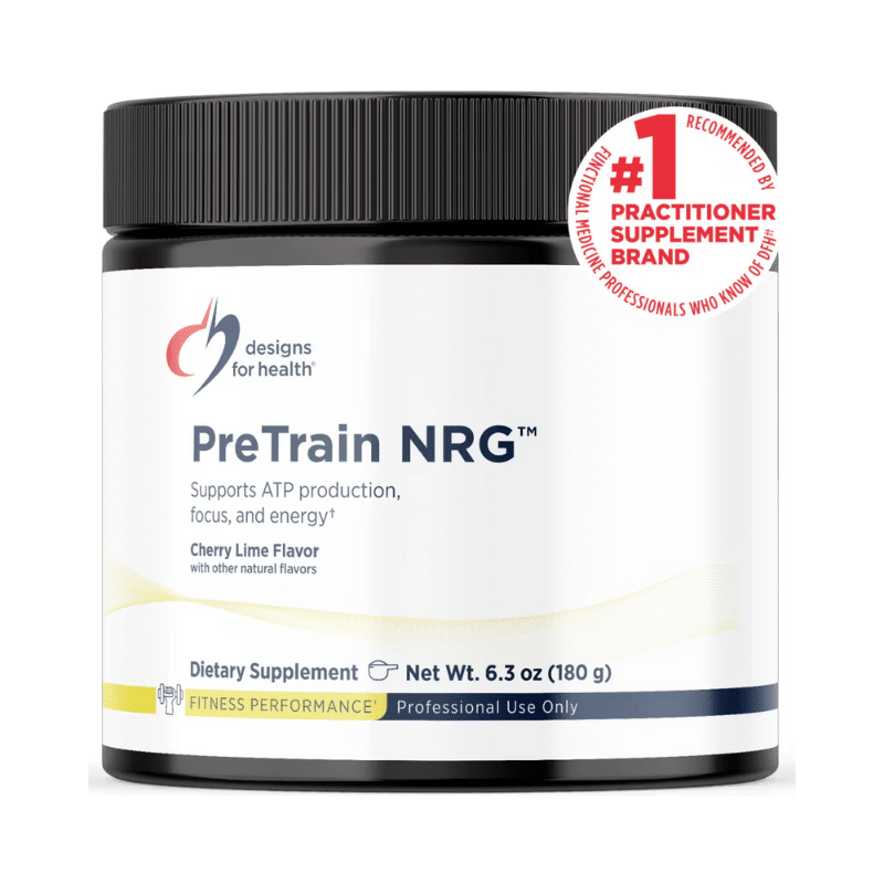 PreTrain NRG™ by Designs for Health is a zero-sugar pre-workout powder that enhances focus, energy, and strength with a balanced blend of tyrosine, acetyl L-carnitine, caffeine, and creatine.