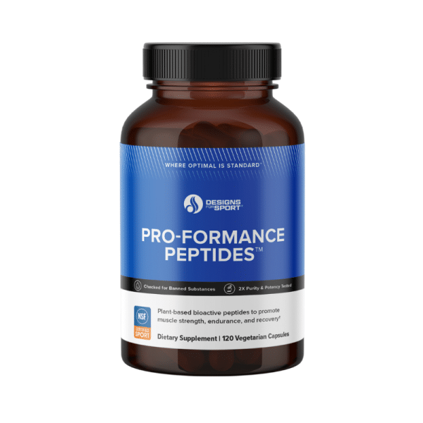Pro‑Formance Peptides™ by Designs for Health: Plant-based PeptiStrong™ supports muscle recovery, performance, and lean mass.
