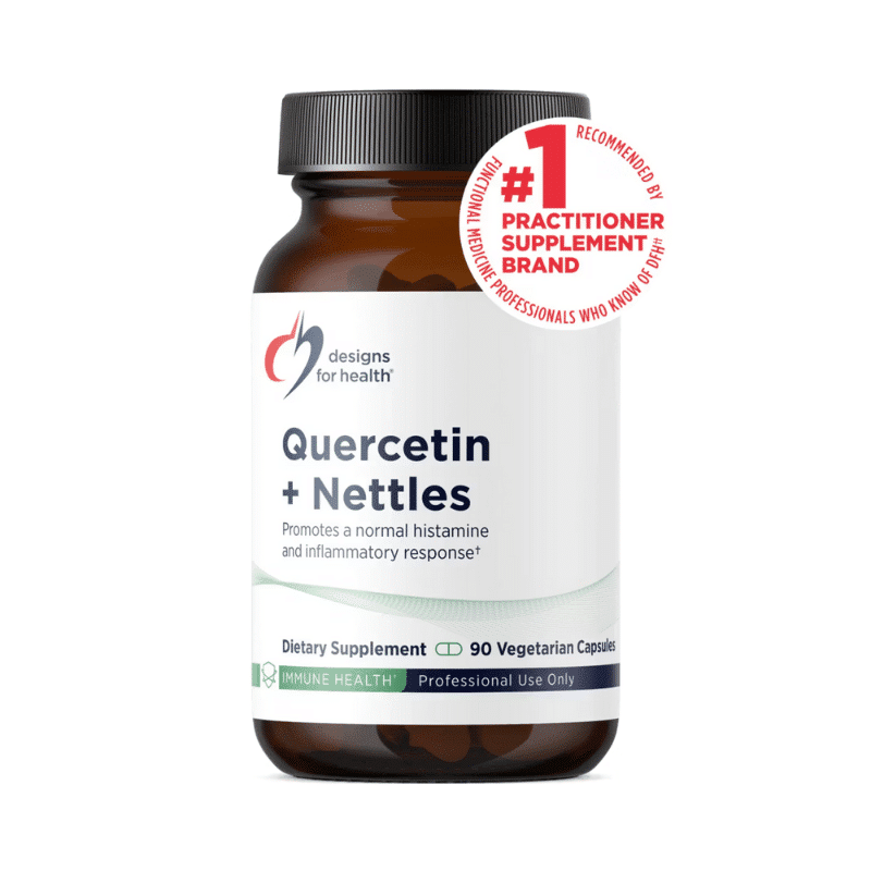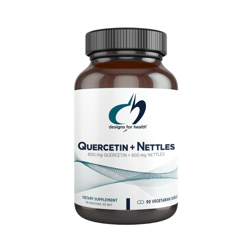 Quercetin + Nettles by Designs for Health is a synergistic blend formulated to support immune balance and a healthy inflammatory response. This supplement combines quercetin, a potent antioxidant flavonoid, with nettle leaf extract, traditionally used to promote respiratory health and alleviate seasonal discomforts.