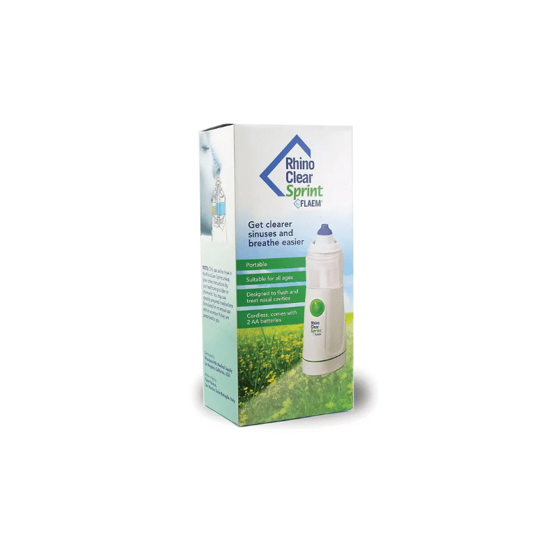 Rhino Clear Sprint by Flaem is a nasal nebuilzer specifically designed for flushing and treating the nasal cavities of both adults and children with saline solutions. The nasal nebulizer is portable and operates on 2 AA batteries.