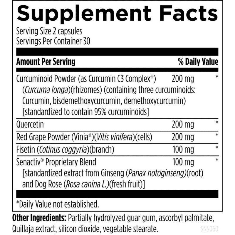 Senolytic Synergy™ by Designs for Health offers a comprehensive approach to supporting cellular health and longevity. As the body ages, senescent cells—often referred to as “zombie cells”—accumulate and can contribute to various age-related concerns. This formula combines a synergistic blend of ingredients, including curcumin, quercetin, red grape powder, fisetin, and Senactiv®, all known for their senolytic properties. These compounds work together to promote the clearance of senescent cells, support a healthy inflammatory response, and enhance overall cellular function. Incorporating Senolytic Synergy™ into your wellness regimen may aid in maintaining vitality and promoting healthy aging. This product is non-GMO and free from gluten and soy, catering to various dietary preferences.