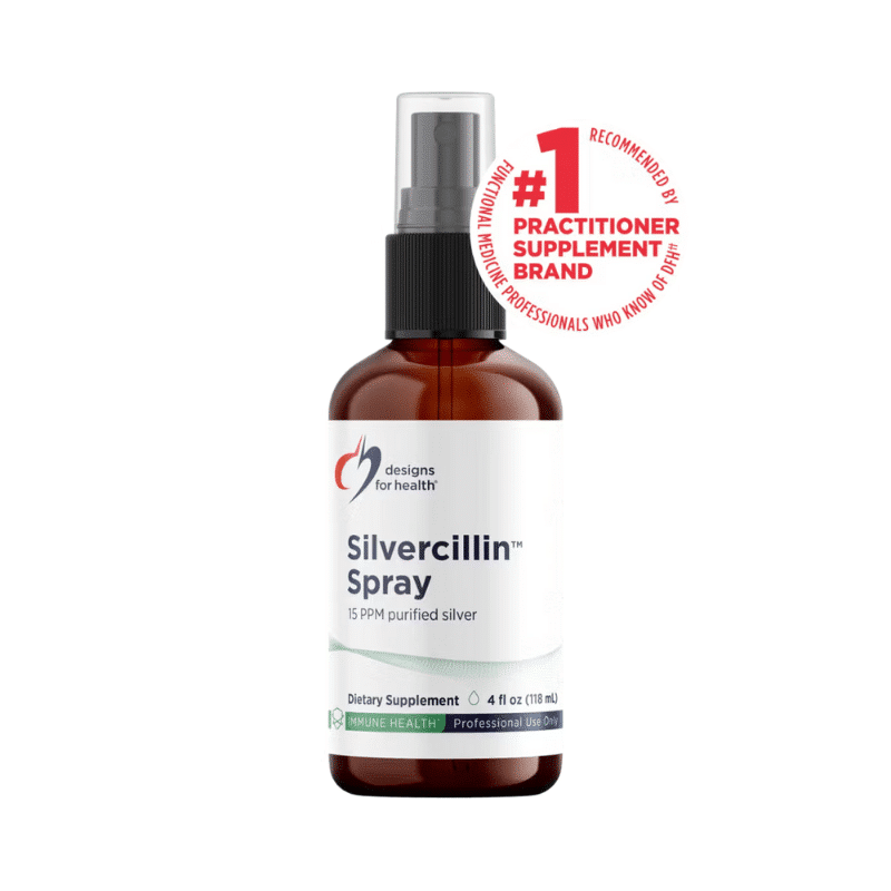 Silvercillin™ Spray by Designs for Health is a non-toxic, highly effective silver-based supplement designed to support the immune system and promote natural healing. Utilizing advanced Silver Sol Technology®, it offers broad-spectrum antimicrobial benefits without disrupting beneficial bacteria.