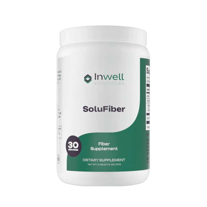 SoluFiber by Inwell — clear, grit‑free soluble fiber per serving; supports healthy stool consistency and gut balance without altering taste.