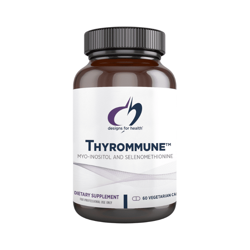 Thyrommune™ by Designs for Health is a specialized supplement formulated to support optimal thyroid function, promote healthy hormone balance, and enhance immune health. It combines myo-inositol and selenomethionine, providing essential nutrients that work synergistically to maintain thyroid health and overall well-being.