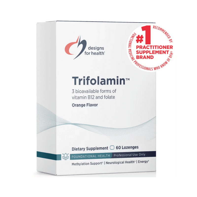 Trifolamin™ by Designs for Health is a synergistic blend of three bioavailable forms of vitamin B12—methylcobalamin, hydroxycobalamin, and adenosylcobalamin—combined with the active form of folate, 5-methyltetrahydrofolate. This formulation supports optimal B12 levels, promoting energy production, neurological function, and red blood cell formation.